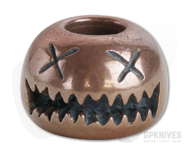 Proudly made in Finland by Audacious Concept EDC Gear, the custom designed Smiley Bead was designed to add style to your knife lanyard or keychain. Looking something like a Jack O’ Lantern, the Smiley Bead has x’s for eyes and a macabre grinning mouth. A 6 mm hole allows for lanyard or keychain attachment. This Small version is made of solid copper with a stonewashed finish.