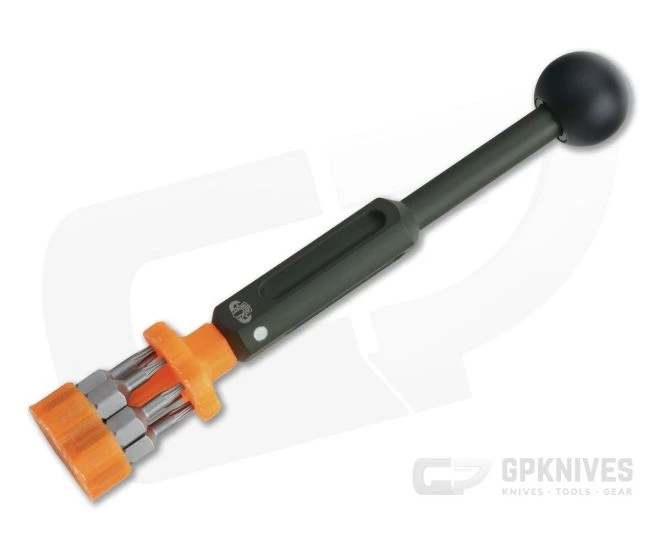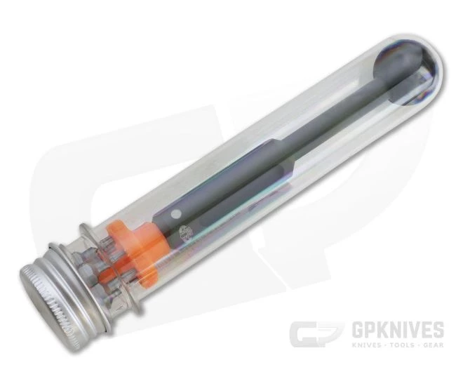 The Audacious Concept Knife Tool Bit Driver is made from full Titanium and is a great addition to your knife maintenance kit or your every day carry gear. This ¼” bit driver accepts all standard ¼” bits. It comes with a 6-bit holder and is packaged in a screw-top plastic “test tube” container. The body of the driver is solid 6AL4V Titanium with precision machined fluting for a secure grip and dual GITD inlays. The ball is made of solid titanium and equipped with an interchangeable bearing pivot to allow for smooth and effortless operation whether as a driver or fidget spinner. This version comes in the EOD color way with a Green coated body and Black coated ball.
