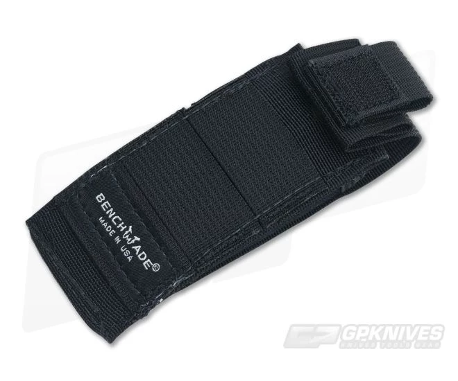 Benchmade MOLLE compatible folder pouch with snap-over hood closure. Made from high grade black nylon with a heavy stitch. Elasticized to offer a true fit. Can be used for belt carry with included malice clip, or attached to MOLLE gear. Made to fit Benchmade models 915 and 5000.