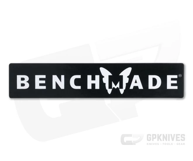 Sport your Benchmade pride with this 1×5″ vinyl sticker featuring the Benchmade Wordmark logo in white on a black background.