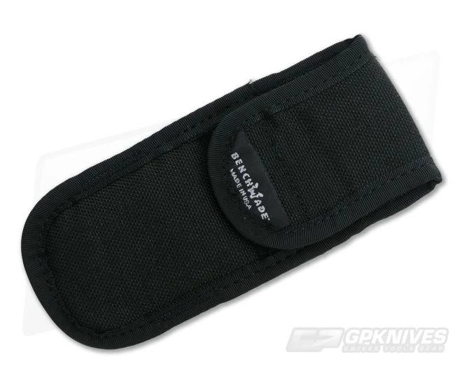 Benchmade Large Soft Sheath made of poly-ballistic nylon with soft liners and velcro closures. Fits one folder up to 5.25 inches closed. Can be worn horizontally or vertically on belt.