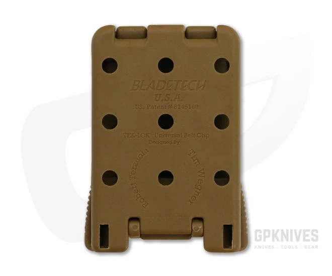 The Blade-Tech original TEK-LOK attachment blends innovation and versatility offering a carry accessory that is convenient to attach and remove and features a secondary locking system for additional security. The Tek-Lok is a favorite for users who need to know their knife is not going anywhere no matter what. With the Tek-Lok your tools will be there when you need them most. This Dark Earth version comes with attachment hardware included. Fits belts up to 2 inches wide.