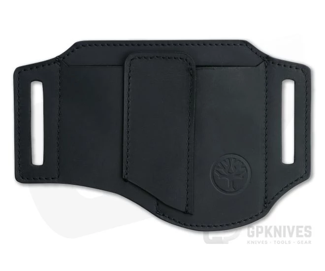 The Boker ED-Three is an everyday carry leather belt holster to keep up to three of your most used EDC items close to hand and at the ready. The main pouch (closed bottom) can hold a folding knife with a roughly 4 inch closed length. Two open bottom sections hold a flashlight (~ 1 in. dia.) and pen respectively. This version is black with embossed Boker tree logo.