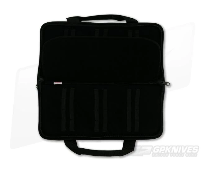 Case Carrying Case with leather exterior and Case logo imprint. 100% cotton thick foam padding with center separator to protect knives. Holds up to 24 knives.