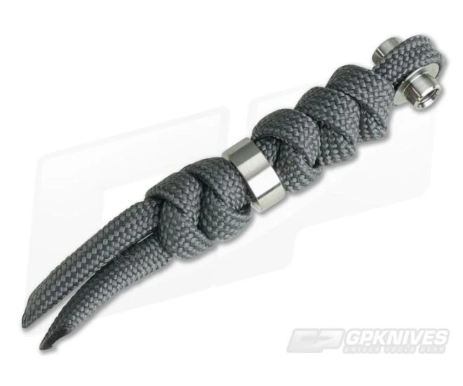 This Chris Reeve Lanyard is made for attachment to a Large Inkosi. The plain titanium standoff anchors the lanyard for attachment. The cord tie is made of charcoal gray paracord and features a silver titanium spacer. Requires dis-assembly of the knife for attachment. Give your Chris Reeve Inkosi a custom touch with a CRK Lanyard!