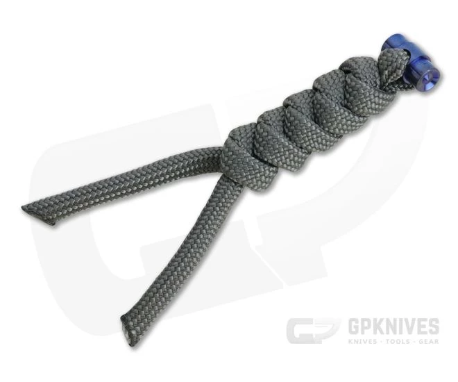 This Chris Reeve Lanyard is made for attachment to a Large Sebenza 21/31 or Umnumzaan. Lanyards are tied with a snake knot using 5 strand paracord and attached to a titanium lanyard pin. Requires disassembly for attachment. This version comes in Charcoal with a blue pin.
