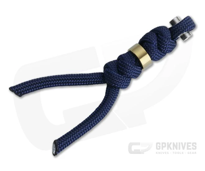 This Chris Reeve Lanyard is made for attachment to a Small Inkosi. Lanyards are tied with a snake knot using 5 strand paracord with a round titanium bead and attached to an Inkosi back spacer. Requires disassembly for attachment. This version comes in Midnight with a gold bead.