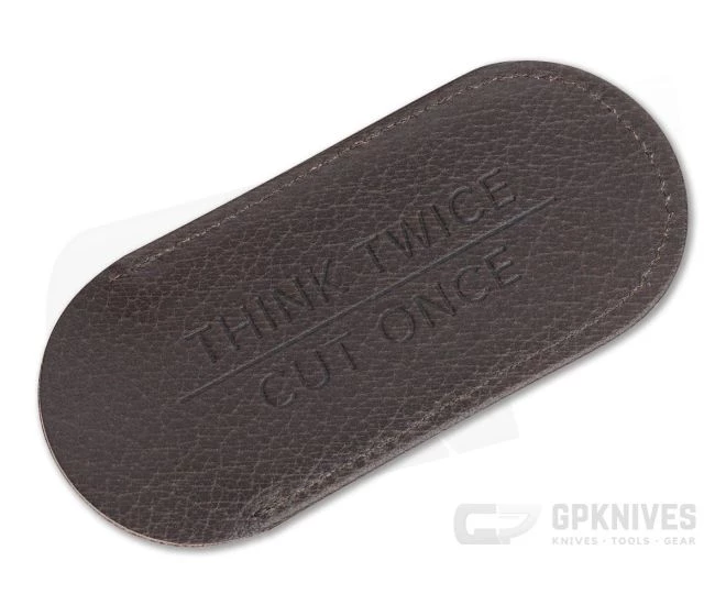 The Chris Reeve Small brown leather pouch is embossed with their CR logo on the front side and company slogan “Think Twice, Cut Once” on the back. This small size is designed to fit a Small Sebenza 21/31, Small Inkosi, TiLock or Mnandi. The pouch is designed to protect the knife from scratches when slipped into a pocket with change or keys. This pouch does not have a belt loop attachment.