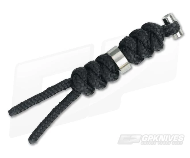 This CRK knotted lanyard featuring Black cord with a Silver titanium pin and bead is ready to attach to your Small Sebenza 21 knife. Some knife dis-assembly is required.