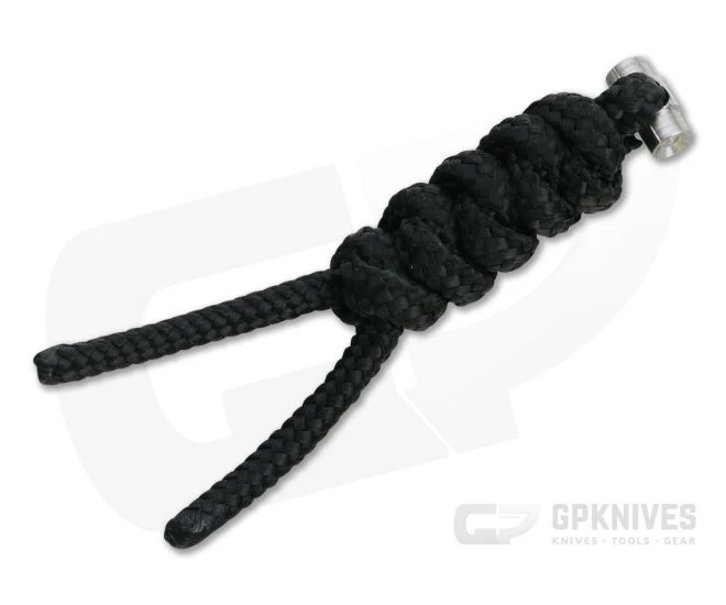 This Chris Reeve Lanyard is made for attachment to a Small Sebenza 21/31. Lanyards are tied with a snake knot using 5 strand paracord and attached to a titanium lanyard pin. Requires disassembly for attachment. This version comes in black with a silver pin.