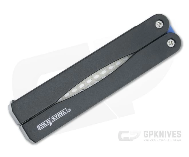 The Cold Steel Dual Diamond Whetstone is a folding sharpener that gives you the power of fast cutting diamond abrasives in a slim, lightweight package that goes anywhere. Fold open the butterfly-style handle for access to the 360 and 600 grit plates that sharpen everything from shovels to pocket knives. Coming in at under 2.5 ounces this pocket sharpener practically disappears until it is ready for use.