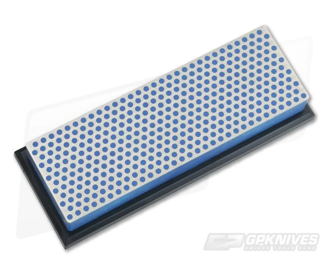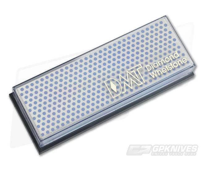 DMT Diamond Whetstone Sharpener with coarse 325 mesh diamond. Steel molded over plastic base with diamond coating. Uses water for lubrication. Unique pattern reduces sharpening time. Includes instructions and plastic storage case.