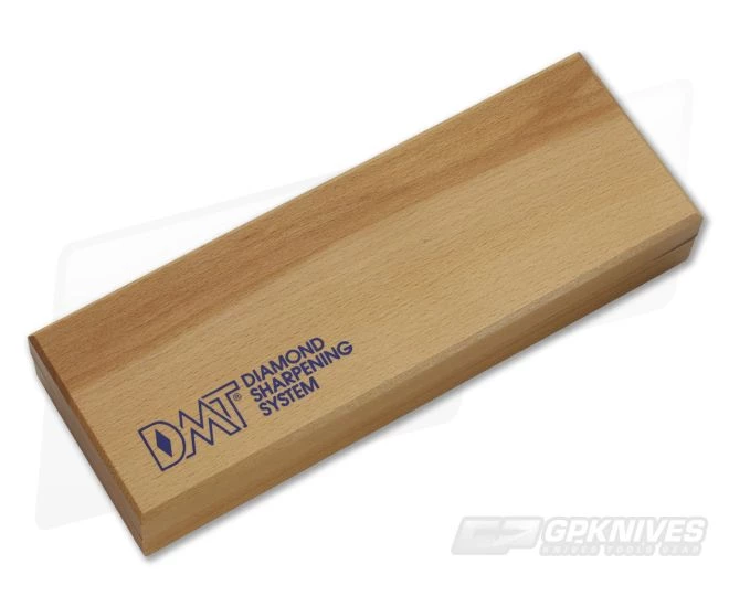 DMT Diamond Whetstone Sharpener with coarse 325 mesh diamond. Steel molded over plastic base with diamond coating. Uses water for lubrication. Unique pattern reduces sharpening time. Includes instructions and wood storage case.
