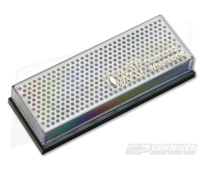 DMT Diamond Whetstone Sharpener with extra coarse 220 mesh diamond. Steel molded over plastic base with diamond coating. Uses water for lubrication. Unique pattern reduces sharpening time. Includes instructions and plastic storage case.