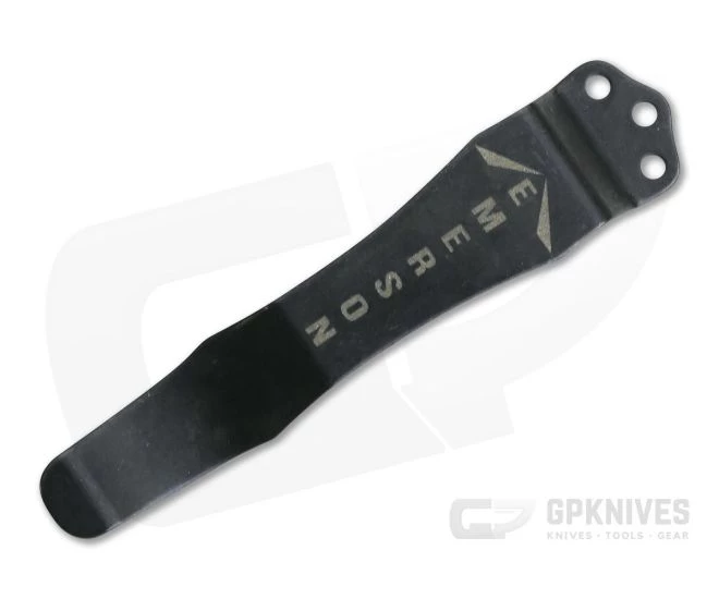 This custom clip for Emerson Knives is a direct replacement for the stock clip. Simply unscrew your old clip, remove and screw on your new one. This version is black oxide coated and tumbled stainless steel laser engraved with the classic Emerson Logo.