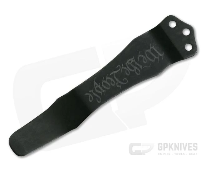 This custom clip for Emerson Knives is a direct replacement for the stock clip. Simply unscrew your old clip, remove and screw on your new one. This version is black oxide coated stainless steel laser engraved with “We The People” in a calligraphic script typeface.