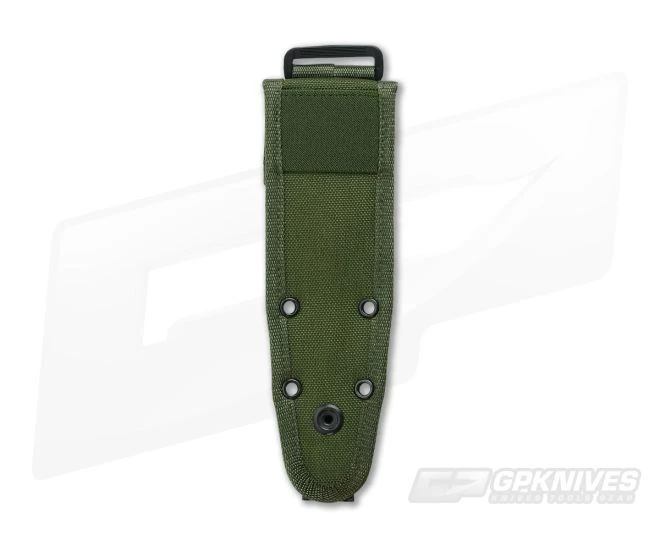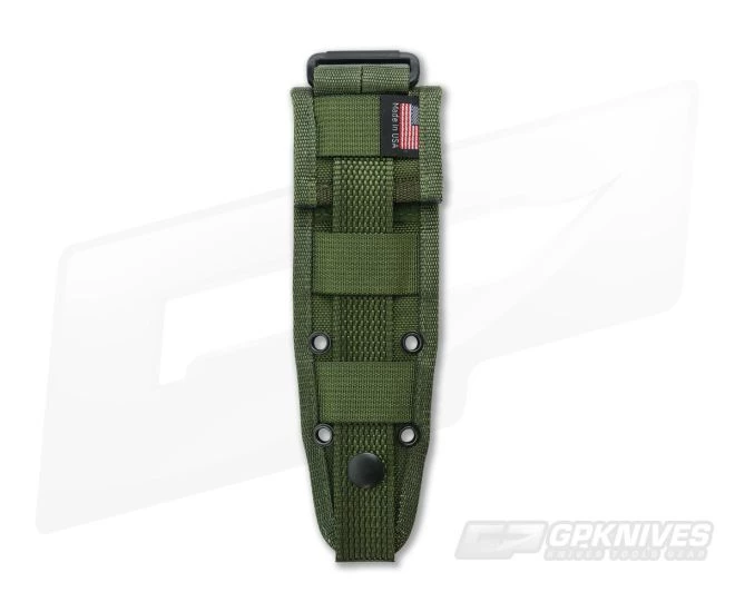 The ESEE Izula MOLLE Back in Olive Drab is designed to convert the Izula or Candiru sheath into a Cordura MOLLE compatible sheath. Simply align the holes to those on the original sheath and attach with the hardware provided with the clip plate accessory or that came with the knife. The top half has an elastic retention strap to hold the pommel of the knife and making the sheath jump safe. Built-in belt loop on the top portion for traditional belt carry. Brand new direct from ESEE.