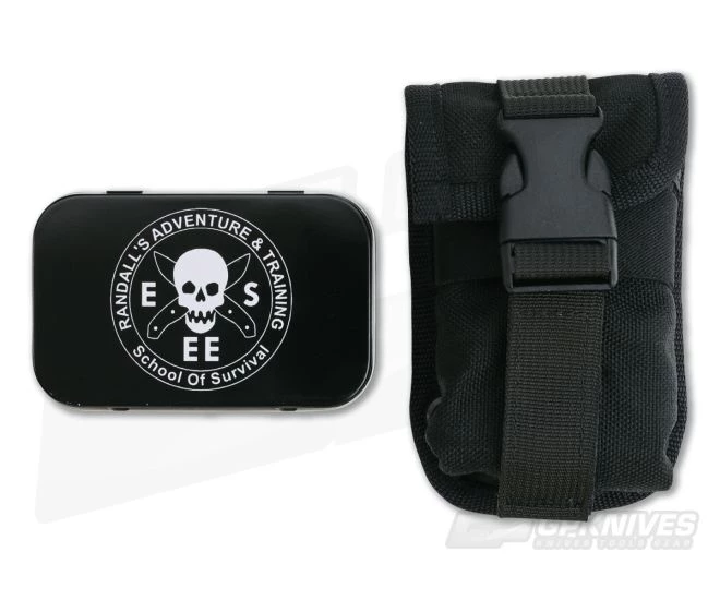 ESEE Accessory Pouch manufactured from durable Cordura fabric. The pouch will bolt to the front of the ESEE 5 or ESEE 6 hard sheath. The pouch is equipped to hold the included storage tin or a standard sized Altoids tin.