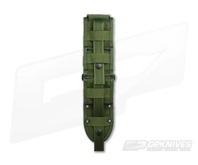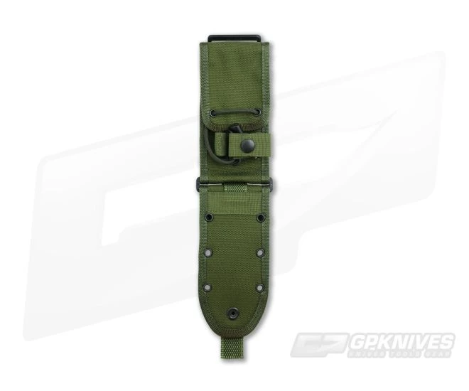 The ESEE Jump-Proof MOLLE Back is designed for the easy attachment of your ESEE 5 or ESEE 6 to your MOLLE gear. The MOLLE back is composed fully of olive drab ballistic nylon. The top half has an adjustable handle retention strap as well has a flap that can be placed over the pommel of the knife. The paracord with cord lock can be pulled tight protecting the knife, and making the sheath jump safe.