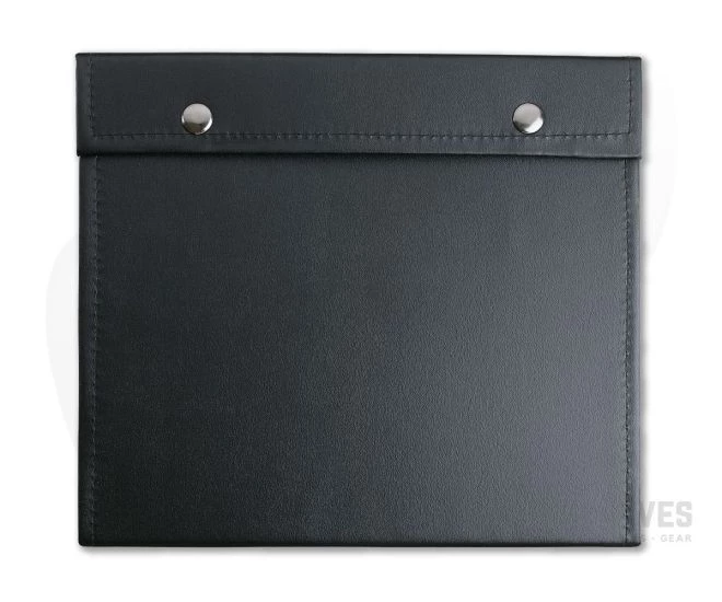 Folding Knife Pack holds approximately 24 knives. Durable cordura cover with felt and cloth lining (colors vary). Double snaps for secure closure.