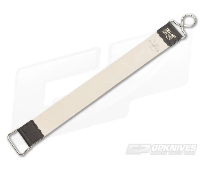 Herold Solingen leather strop has a nickel plated swivel end and handle. Made from premium cowhide leather with thirteen inches of usable area. Brand new imported from Germany.