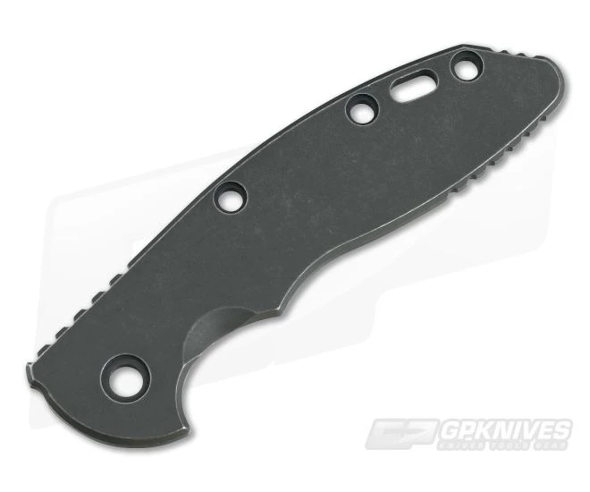 The Hinderer Knives Smooth “Battle” Black DLC Titanium Handle Scale is Precision CNC machined from 6AL4V titanium to replace both the G10 scale and titanium liner on the XM-18 3.5″ making it a full titanium handled work horse. This scale is finished in a durable, matte black DLC coating with a sleek, non-reflective look. This scale also features Hinderer’s “Battle” finish, a media tumble process that gives each piece a unique look and hides wear over time.