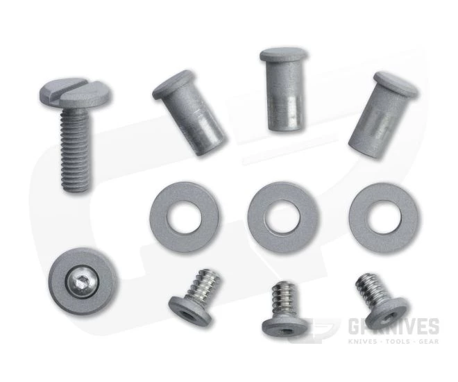 The Hinderer Knives Hardware Kit is precision machined to fit the Hinderer XM-18 3.5″ line of knives. This complete titanium hardware kit features Working Finish titanium hardware to accent, upgrade and personalize your Hinderer XM-18 3.5″ folder.