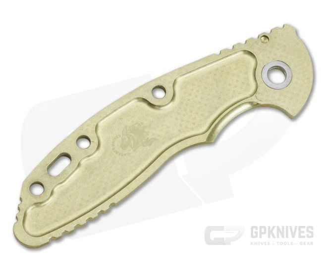 The Hinderer Knives Smooth Satin Finished Brass Handle Scale is Precision CNC machined from solid, raw Brass to replace both the G10 scale and titanium liner on the XM-18 3.5″. Add your own style with a great heft in hand in a material that will form a unique patina through use over time. This scale is equipped with a bright, stylish satin finish. Includes steel pivot spacer (prevents wear) and instructions for installation with washers or bearings.