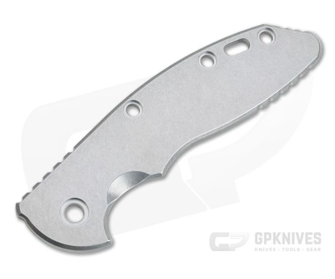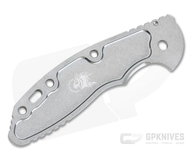 The Hinderer Knives smooth stonewashed finished titanium handle scale is precision CNC machined from 6AL4V titanium to replace both the G10 scale and titanium liner on the XM-18 3.5″ making it a full titanium handled work horse. Updated with internal milling, the titanium scale now comes in at just over 1.5 ounces. This scale is equipped with a bright, stonewashed finish that hides wear well while still being bright and eye-catching.