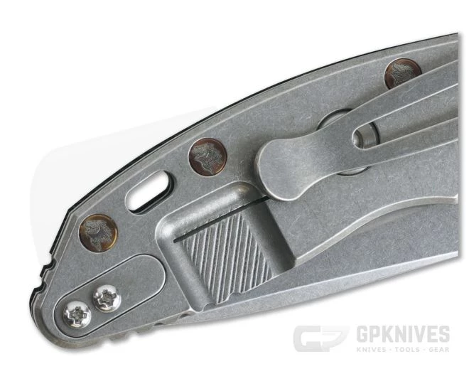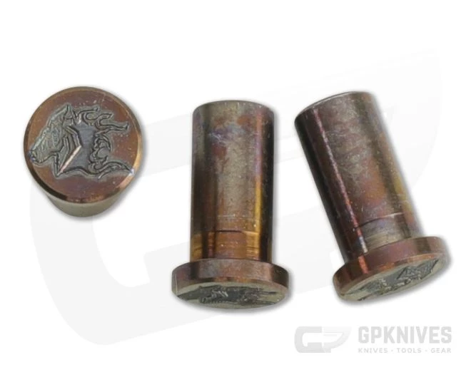 Customize your Hinderer Knives XM-18 3″ folder with Stonewashed Bronze anodized handle nuts, each laser engraved with the Hinderer Knives Horse Head logo. Partial disassembly required for installation.
