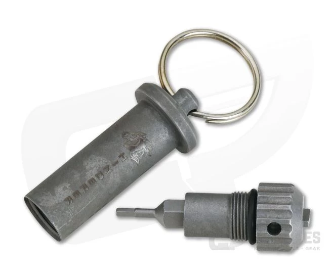 Hinderer Knives Battlefield Pickup finished Stainless Steel XM-18 Armorer’s Tool Kit is a complete disassembly tool for Hinderer XM-Series folders. The “Battlefield Pickup” finish is a heavy patina that gives each tool a unique, worn and weathered finish. Conveniently pocket-sized, the Armorer’s Tool Kit comes complete with key ring to go wherever you do. Includes a built-in spanner wrench for pivot adjustments and a 5/64″ Wiha hex bit for work on handle screws. The magnetic head will also hold any standard 1/4″ bit.