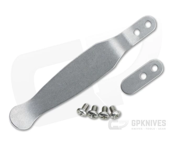 Made with precision by Hinderer Knives this machined titanium fits all XM series models, Eklipse and MP-1 knives. Made from quality US sourced titanium this set is a direct replacement for standard Hinderer clip and filler tabs. Each set includes one pocket clip, a matching filler tab and four screws. This “Solid” version has a stonewashed finish.