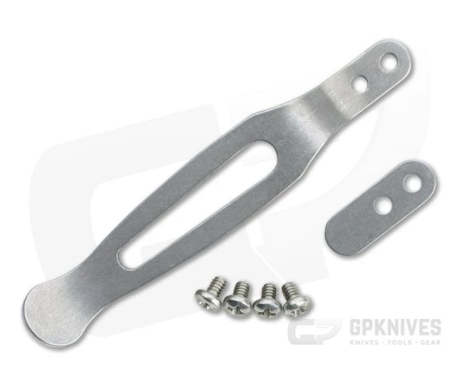 Made with precision by Hinderer Knives this machined titanium fits all XM series models, Eklipse and MP-1 knives. Made from quality US sourced titanium this set is a direct replacement for standard Hinderer clip and filler tabs. Each set includes one pocket clip, a matching filler tab and four screws. This Standard version has a single laser cut hole and stonewashed finish.