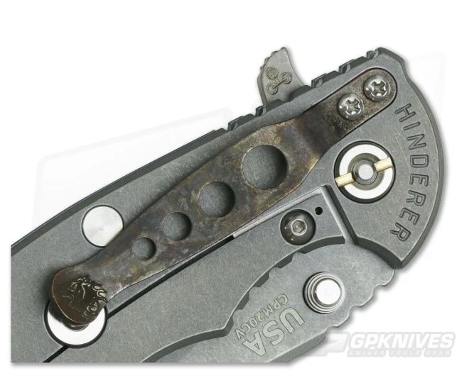These Holey Clips from Hinderer are made from precision machined Stainless Steel that’s been heavily patinaed for an Antique look. They feature four laser cut holes and fit all XM models along with the Eklipse and MP-1. Installation is a breeze. Simply unscrew your old clip, remove and screw on your new one.