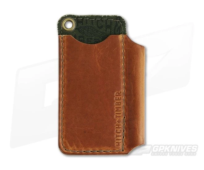 Cut, stitched and burnished with great care by human hands the Hitch & Timber Big Runt offers the same organization and protection as the smaller Pocket Runt but for a full-size knife and pen. Made from 4oz American tanned leather in English Tan color the Big Runt carries your full size EDC knife and pen in a rugged package. The rear interior is lined with repurposed US military canvas stamped with the Hitch & Timber traditional snake logo. The Big Runt slip is equipped with a brass grommet for lanyard or other tool attachment.