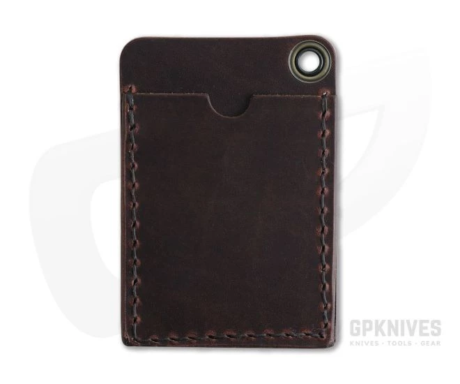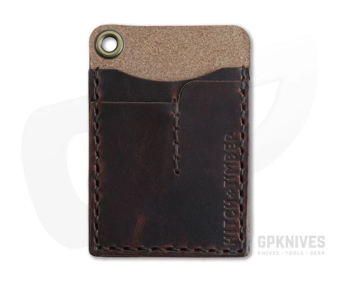 Cut, stitched and burnished with great care by human hands the Hitch & Timber Card Caddy is an EDC wallet that also offers organization and protection for your EDC gear. Made from 4oz American tanned leather in Autumn Harvest color, the Card Caddy EDC utility wallet is built as the best option to keep your everyday carry organized and accessible carrying a small pocket knife, pen, cards and folding money. The Card Caddy is equipped with a brass grommet for lanyard or other tool attachment.