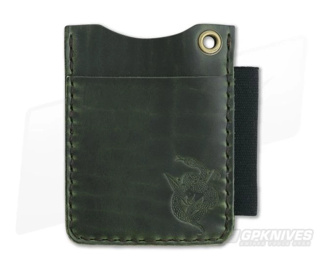 Cut, stitched and burnished with great care by human hands the Hitch & Timber Duz-All Utility Wallet is the best way to keep your EDC tools protected and accessible. Made from 4oz American tanned leather in Antique Green color, the Duz All is a superfecta of organization for carrying your pocket knife, flashlight, pen, notepad, cards, & cash all in one small package. The Duz-All slip is equipped with USA Made, high strength, Mil-Spec elastic for pen carry and a brass grommet for lanyard attachment. It can be carried in the front or back pocket of traditionally sized men’s jeans & rugged enough to just toss in your bag.