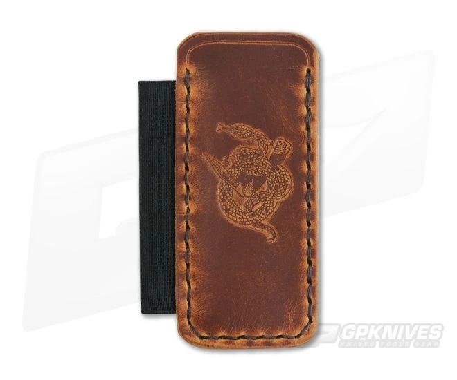 Cut, stitched and burnished with great care by human hands the Hitch & Timber No. 15 Slip is built to keep your everyday carry organized and accessible. Made from English Tan 4oz American tanned leather the No. 15 Slip is crafted to keep your two favorite tools together: a small EDC pen and No. 15 pattern Slip Joint. The No. 15 Slip is equipped with USA Made, high strength, Mil-Spec elastic for pen carry and embossed with the Hitch & Timber traditional snake logo.