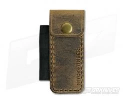 Cut, stitched and burnished with great care by human hands the Hitch & Timber Proper Belt Sheath keeps your pockets clear by securing your Benchmade Proper (or similar sized knife) and EDC pen to your belt. Made from Crazy Horse 4oz American tanned leather the Proper Belt Sheath has a 2″ leather belt loop embossed with the Hitch & Timber Traditional Snake logo and USA Made, high strength, Mil-Spec elastic for pen carry with a brass snap closure on the slip sheath for added security.