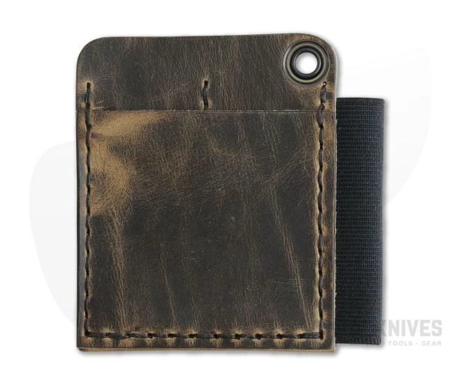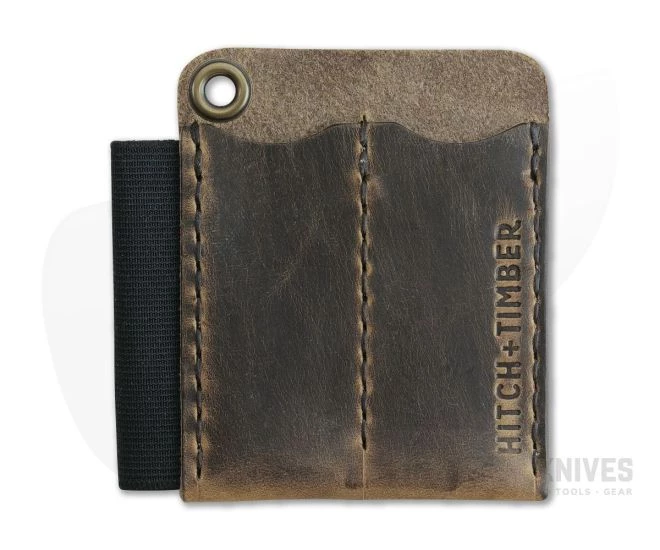 Cut, stitched and burnished with great care by human hands the Hitch & Timber Runt 2.0 Card Holder is the best way to keep your EDC tools protected and accessible. Made from 4oz American tanned leather in Crazy Horse color the Runt 2.0 is a superfecta of organization carrying a small flashlight, pocket knife and pen along with cards or cash in the rear sleeve. The Runt 2.0 Card Holder slip is equipped with USA Made, high strength, Mil-Spec elastic for pen carry and a brass grommet for lanyard attachment.