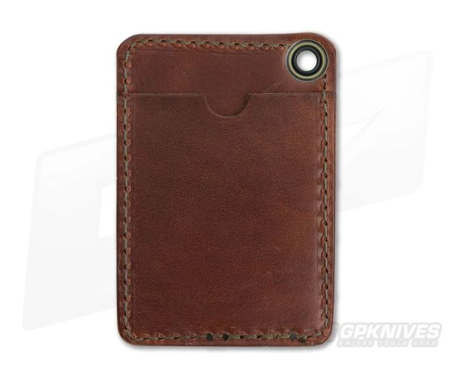 Cut, stitched and burnished with great care by human hands the Hitch & Timber Short Fold an EDC card wallet made from 4oz American tanned leather in Chestnut color. The Short Fold is a minimalist card wallet built as the best option to keep comfortable with front or back pocket carry. Keep your everyday carry light with this simple American made leather wallet. The interior is back lined with a repurposed US military canvas stamped with Hitch & Timber’s traditional snake logo. The Short Fold wallet is equipped with a brass grommet for lanyard or other tool attachment.