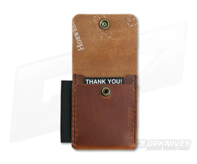 Hitch & Timber Surveyor is an everyday carry Brass Snap Utility Wallet built as the best option to keep your everyday carry organized and accessible. Cut, stitched, & burnished with great care by human hands this wallet is crafted from English Tan dyed 4-4.5oz American tanned full grain leather. This American made leather wallet offers protection and organization for your notebook, pen, cash and cards.Â