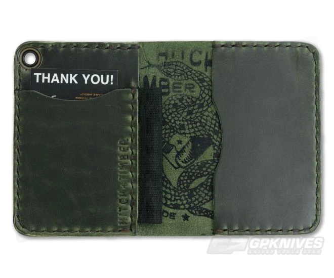 Hitch & Timber Trucker’s Hitch is an EDC Fold-Over Utility Wallet built as the best option to keep your everyday carry organized and accessible. Cut, stitched, & burnished with great care by human hands this wallet is crafted from Antique Green dyed 4oz American tanned leather. This American made leather wallet offers protection and organization for your notebook, pen, cash and cards.