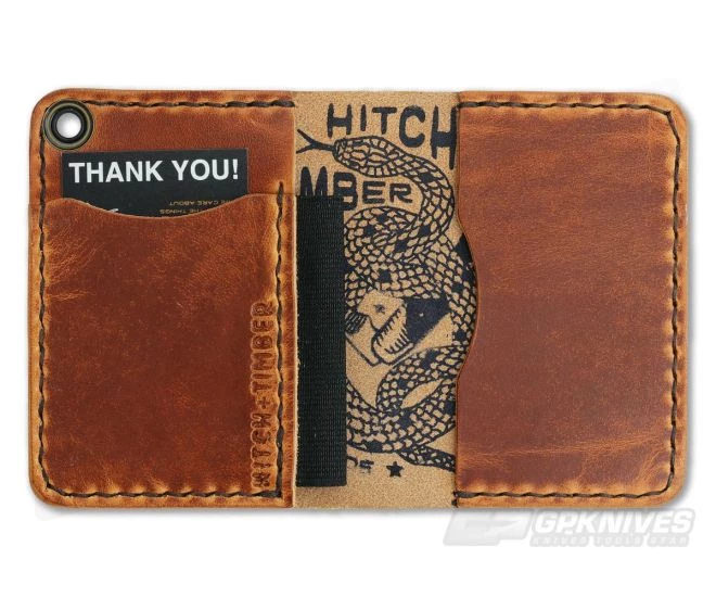 Hitch & Timber Trucker’s Hitch is an EDC Fold-Over Utility Wallet built as the best option to keep your everyday carry organized and accessible. Cut, stitched, & burnished with great care by human hands this wallet is crafted from English Tan dyed 4oz American tanned leather. This American made leather wallet offers protection and organization for your notebook, pen, cash and cards.
