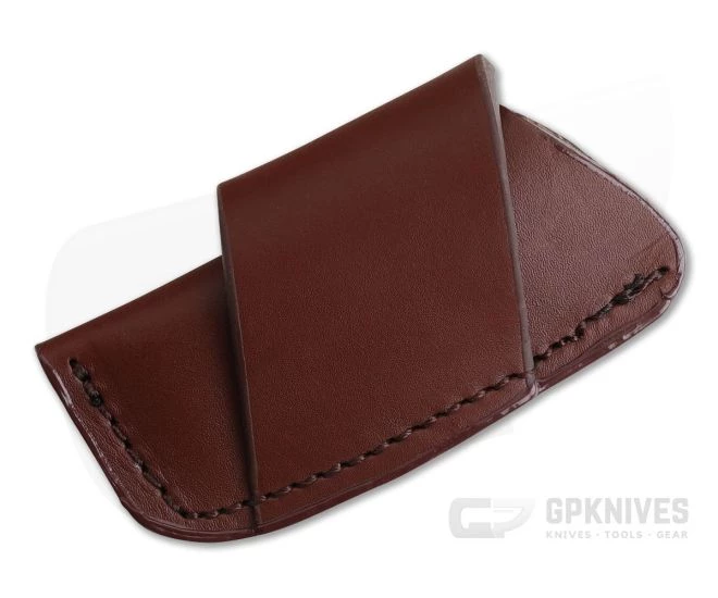Horizontal carry knife sheath made from smooth tan leather. Interior dimensions are ~3.5 x 1.15 inches.