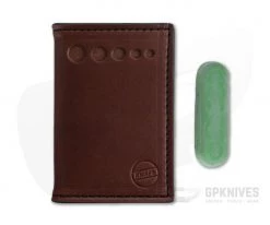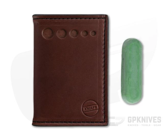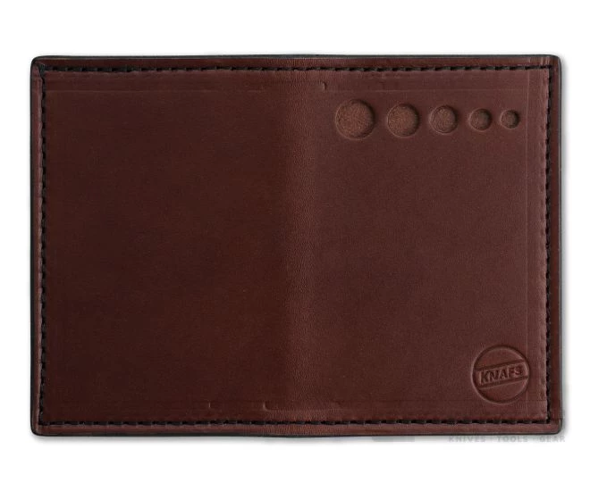The Knafs Leather Strop Wallet for Pocket Knives is just what it sounds like: a single fold card wallet with internal strop leather for touching up your knives. There are four card pockets and two strop panels for high functioning minimalist. What are the holes for? They’re decorative, plus you can put your cash on that side and see a few blessed dollars through those little holes.
