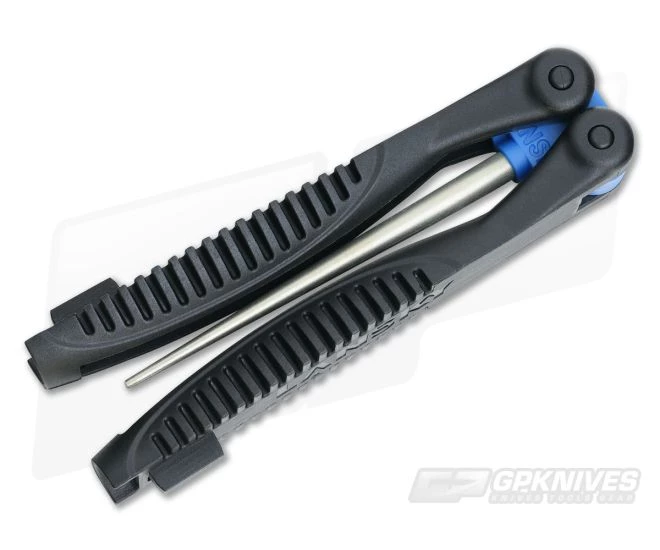 Lansky Diamond Sharpening Rod perfect for sharpening serrations, fish hooks, gut hooks and for other small sharpening needs. The durable Nylon handles fold around the rod for protection and lock together when open. It’s great for carrying in a pocket, tool kit or tackle box. The rod is fine 600 grit diamond.