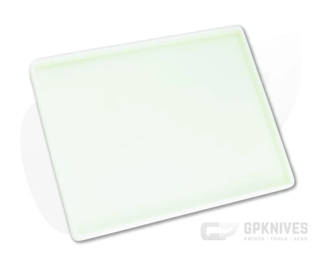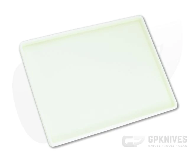 Utilized by military and civilian small arms armorers, non-slip parts tray prevent pins and parts from rolling off the work bench and getting lost. Avionics technicians use them to keep tiny screws from “magically” disappearing. Ideal for personal or professional knife maintenance, these silicone rubber trays features non-slip (inverse golf ball pattern) texture to hold small parts with semi-rigid walls to prevent parts from rolling off the tray surface. Wash with a soap and water. The 3X Jumbo version accommodates large items and makes a great EDC dump tray. This version is glow-in-the-dark silicone.