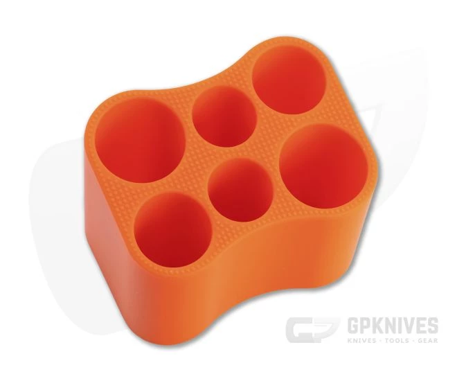 The Maratac RO Tool Caddy evolved from an original design made from wood by a family member of one of the Maratac team. She needed a durable, stylish desk organizer for her most used tools. Four large holes and two smaller holes hold pens, screwdriver, tweezers, rulers & more. Maratac makes their production RO Tool Caddy from silicone rubber for a slip resistant organizer that is also non-magnetic, anti-static, flame/heat-resistant, and solvent resistant making it ideal for most environments. Pairs well with a silicone tray or mat for use with small parts. This version comes in International Orange.