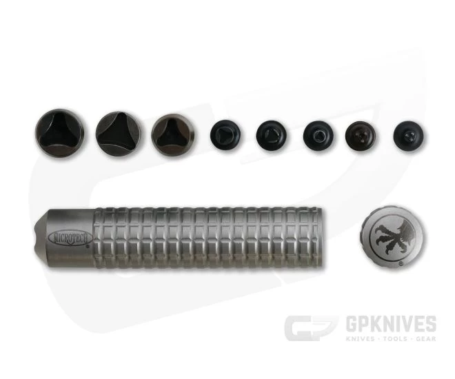 Microtech Knives has always set the standard for high-end American cutlery – from handles and blades down to their proprietary hardware. All Microtech screws are proprietary and high demand for end-user bits has driven Microtech to produce their new Tool Kit. Perfect for users who want to clean and maintain their Microtech knives themselves, the 303 stainless steel driver and 8 interchangeable bits span various Microtech knife models and years. This version comes with a matte gray bead blast finish.